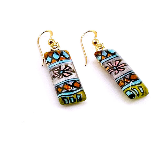 Hand-painted Geometric Pattern Inspired Earrings - 14k gf