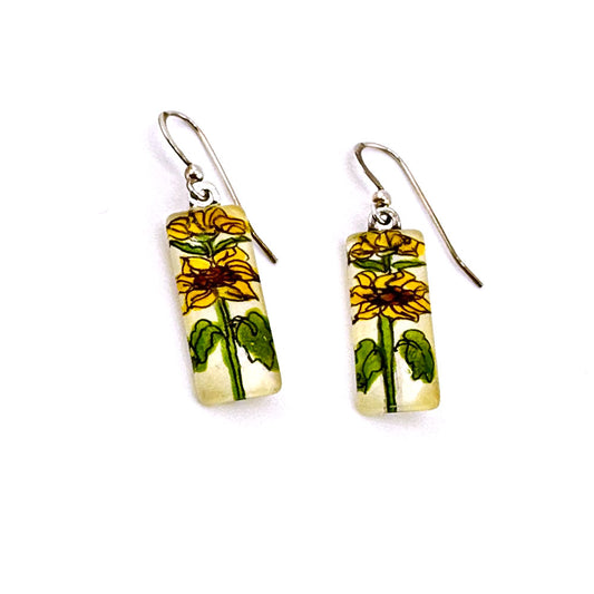 Hand-painted Sunflower Inspired Glass Earrings - Sterling Silver